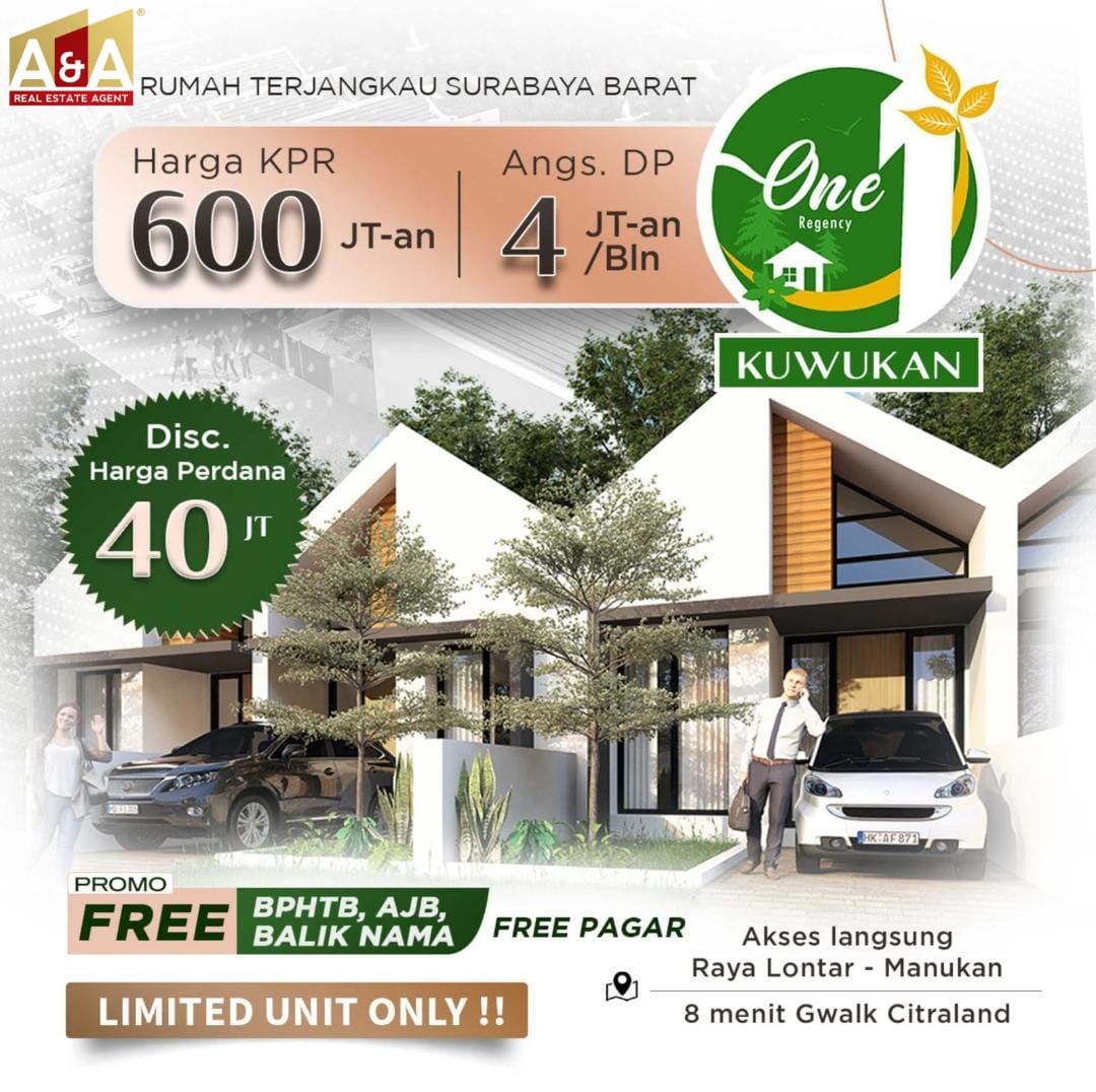 Dijual rumah di kawasan strategis Primary One Regency Kuwukan, Surabaya Barat. Dengan luas tanah 40 m² dan bangunan 62 m², rumah ini terdiri dari 2 kamar tidur dan 1 kamar mandi, cocok untuk keluarga kecil. Lokasinya yang sangat strategis memberikan akses mudah ke berbagai fasilitas umum, seperti Superindo, Gwalk, Food Junction, Supermall, dan Fairway Nine Mall. Rumah ini juga dekat dengan Samsat, memudahkan Anda untuk urusan administrasi kendaraan. Dengan Sertifikat Hak Milik (SHM). Daya listrik 2200 watt sudah cukup untuk kebutuhan rumah tangga. Harga jual rumah ini adalah Rp713 juta. Jangan lewatkan kesempatan memiliki rumah di lokasi strategis ini. Hubungi kami untuk informasi lebih lanjut atau jadwalkan kunjungan.