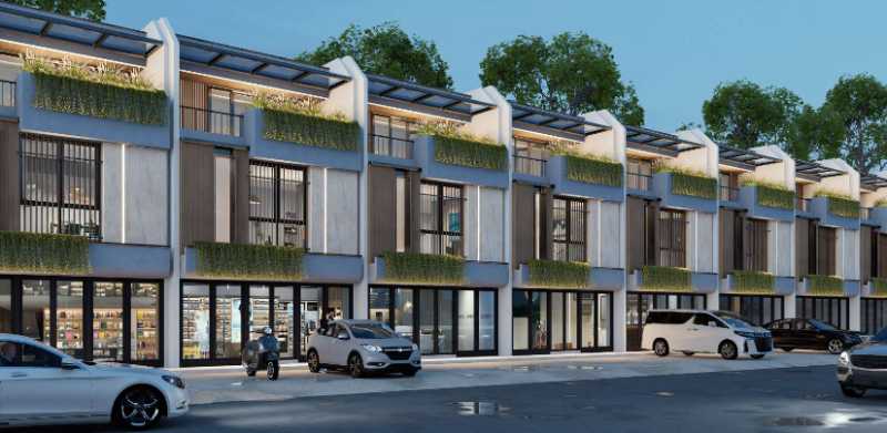 Konsep shophouse modern dengan desain fasad elegan dan profesional